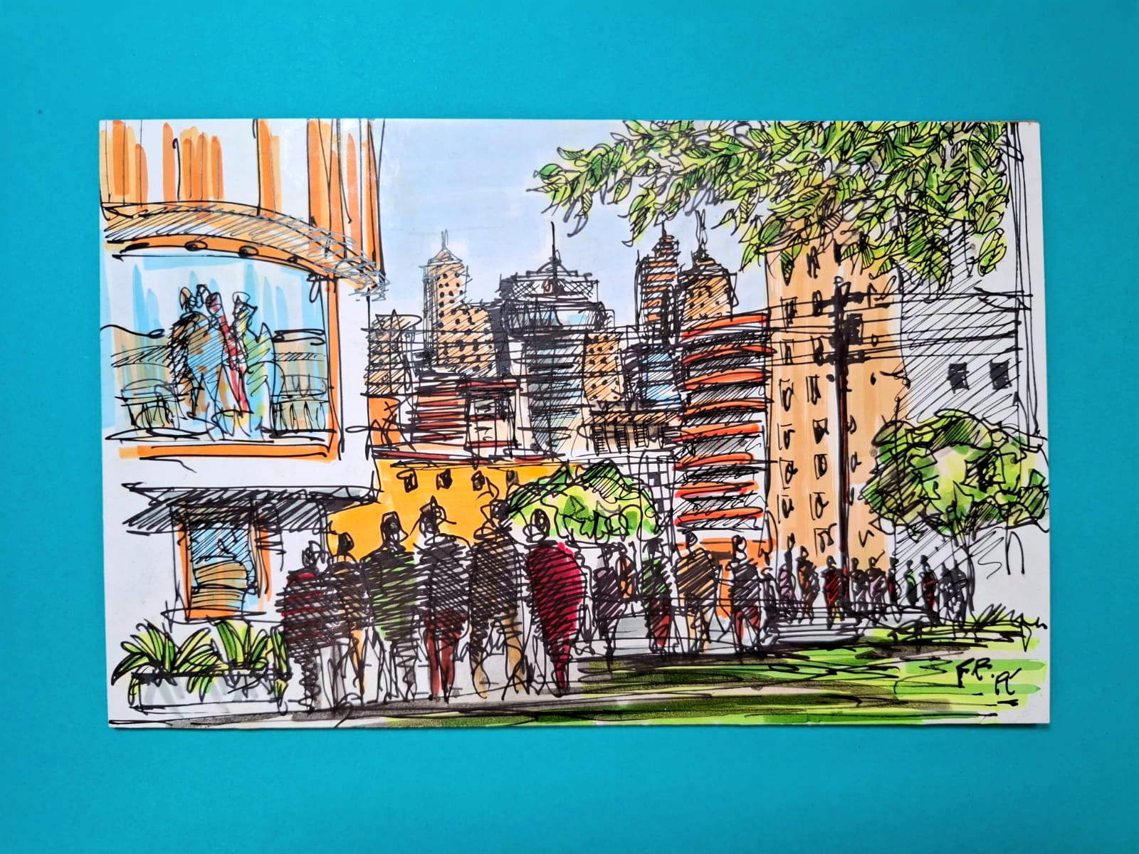 People of all walks of life coming and going in a bustling metropolis Pen & Felt Tip Marker · Architecture